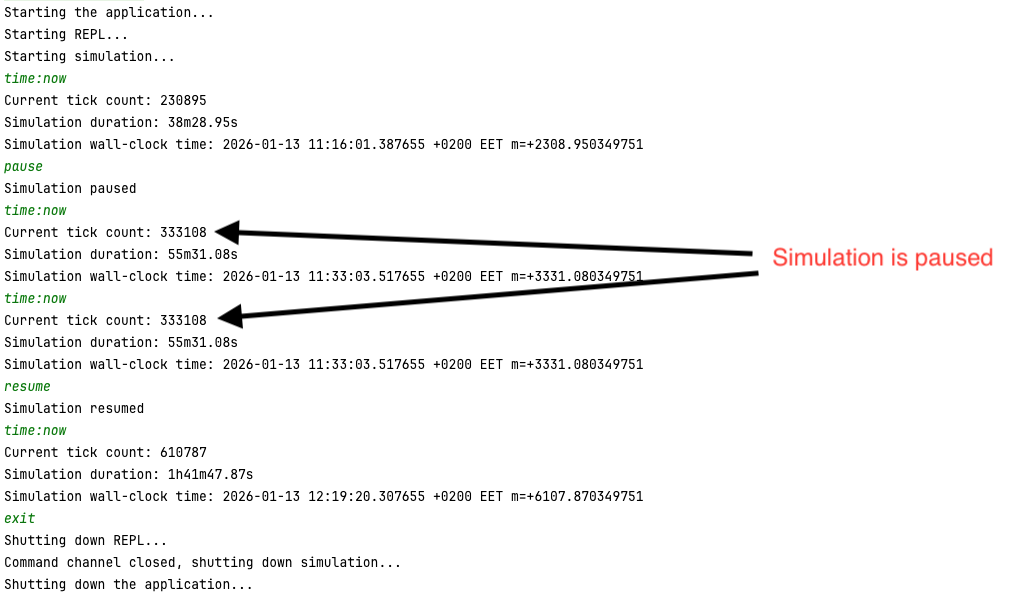 - A REPL in the terminal that lets you inspect the simulation and, more importantly, change it by sending inputs.